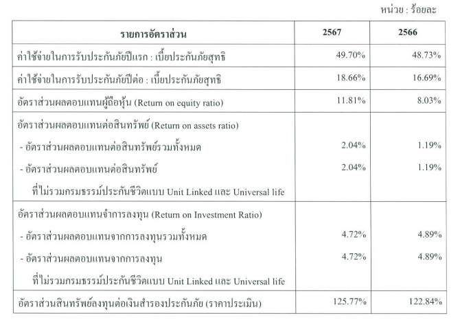 อัตราการเวนคืน แต่อย่างไรก็ตามบริษัทได้ทําการวิเคราะห์ความอ่อนไหวในส่วนของการทดสอบความเพียงพอของหนี้สินจาก สัญญาประกันภัยระยะยาว ตามเกณฑ์การคํานวณเงินสํารองประกันภัยแบบเบี้ยประกันภัยรวม (Gross Premium Valuation) ซึ่งระบุไว้ในหมายเหตุประกอบงบการเงิน โดยเงินสํารองที่คํานวณตาม NPV ยังคงมากกว่า GPV ทําให้บริษัทยังคงคํานวณเงินสํารองประกันภัยแบบเบี้ยประกันภัยสุทธิ (NPV)