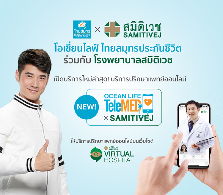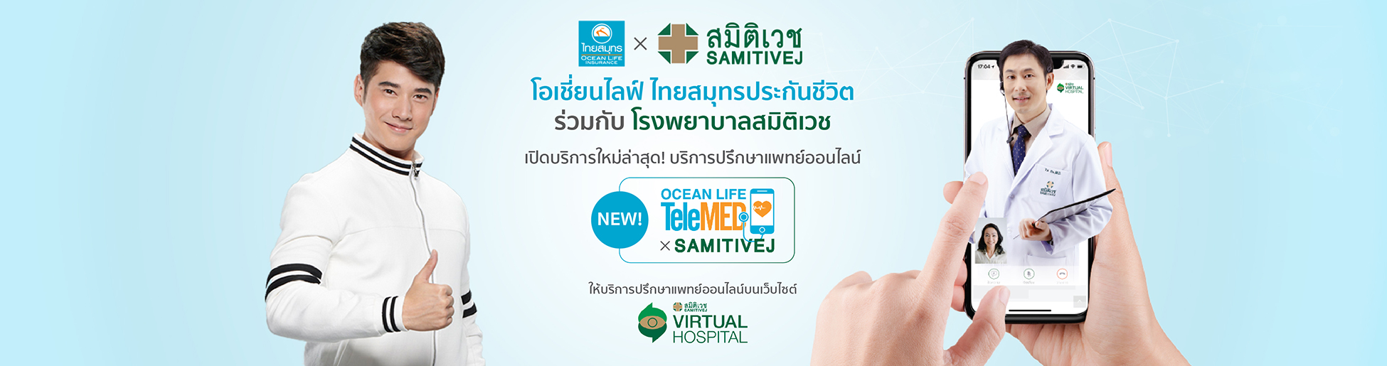บริการปรึกษาแพทย์ออนไลน์ ผ่านระบบของ SAMITIVEJ VIRTUAL HOSPITAL ได้ตลอด 24 ชั่วโมง ด้วยทีมแพทย์ผู้เชี่ยวชาญจากโรงพยาบาลสมิติเวช พร้อมบริการจัดส่งยาถึงบ้านให้ผู้ป่วยได้รับยาที่แพทย์สั่งโดยไม่ต้องเดินทางมาที่โรงพยาบาล ทั้งนี้ค่าใช้จ่ายสามารถใช้สิทธิ์จากประกันที่มีความคุ้มครองผู้ป่วยนอก หรือ OPD ที่มีอยู่ โดยไม่ต้องสำรองจ่ายภายใต้วงเงินความคุ้มครอง (ขึ้นอยู่กับแผนความคุ้มครองตามกรมธรรม์ที่มี)