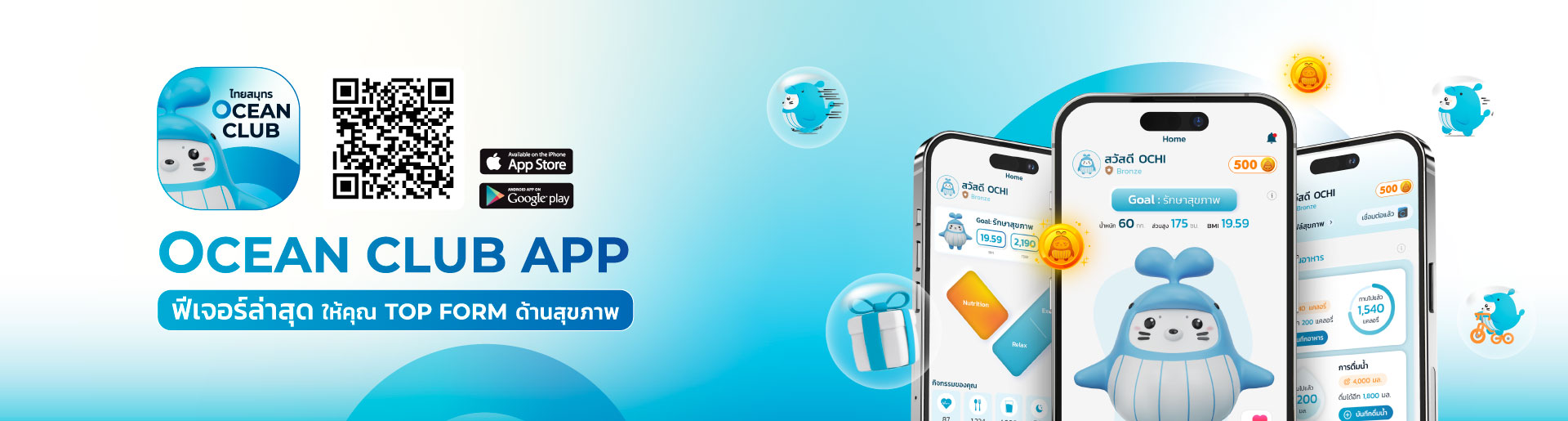 - สําหรับลูกค้า OCEAN LIFE ไทยสมุทรที่เป็นสมาชิก OCEAN CLUB APP เท่านั้น