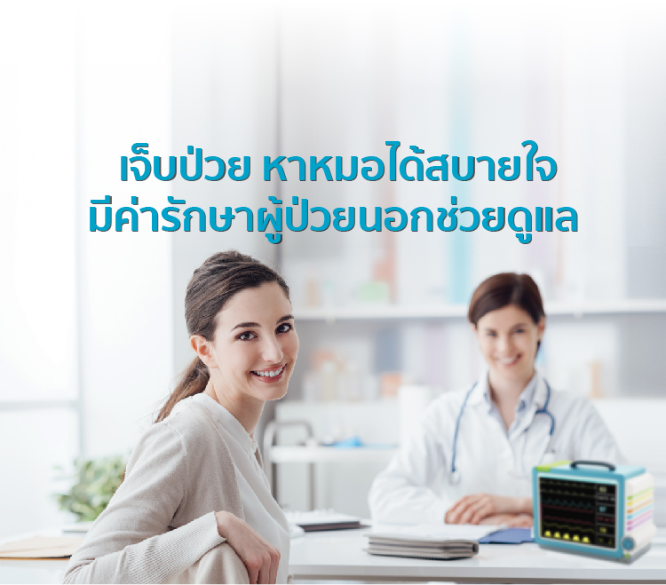 คุ้มครองค่ารักษาพยาบาลผู้ป่วยนอก (OPD) สูงสุดครั้งละ 4,000 บาท หรือสูงสุด 124,000 บาทต่อปี*