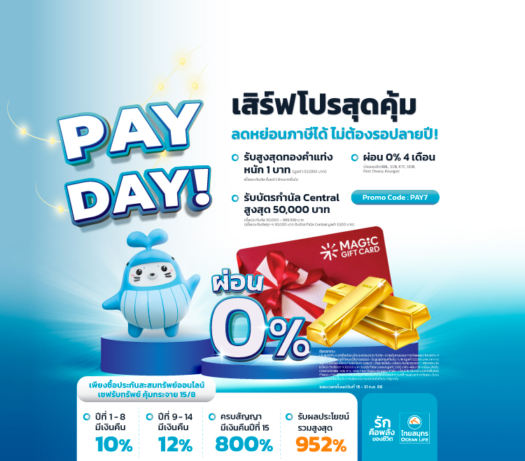 สำหรับลูกค้าที่ขอทำประกันภัย แบบประกันเซฟรับทรัพย์ คุ้มกระจาย 15/8 ผ่านช่องทางออนไลน์ที่เว็บไซต์ www.ocean.co.th พร้อมชำระเบี้ยประกันภัย ในระหว่างตั้งแต่วันที่ 16-31 กรกฎาคม 2568 และบริษัทได้พิจารณาอนุมัติรับประกันภัย ภายในวันที่ 30 สิงหาคม 2568 เท่านั้น