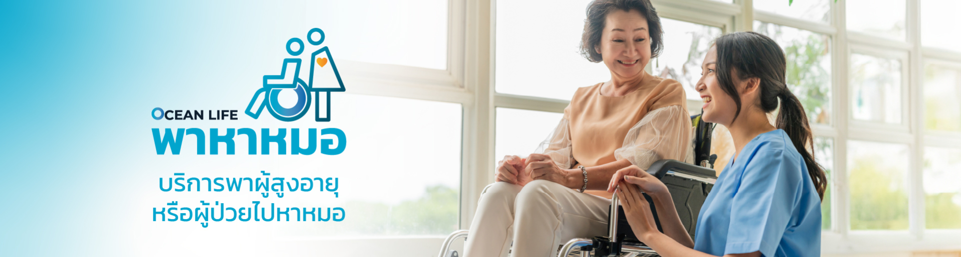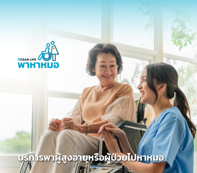 บริการ OCEAN LIFE พาหาหมอ ผู้ให้การดูแลจะพาผู้สูงอายุหรือผู้ป่วยไปโรงพยาบาล ทั้งนำรถมารับที่บ้าน
